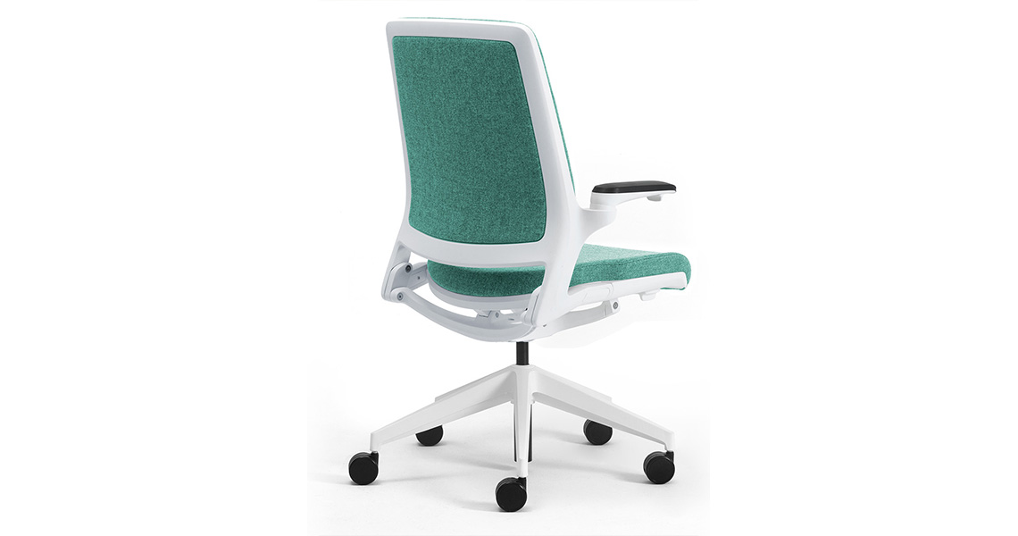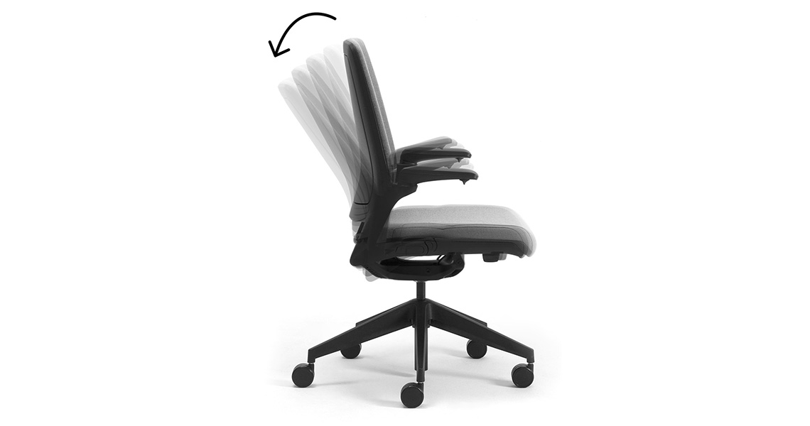 Astra es una silla flexible que se adapta de forma independiente al cuerpo del usuario, siguiendo y apoyando dinámicamente los movimientos del respaldo mientras se estira, se inclina o se levanta de la silla.