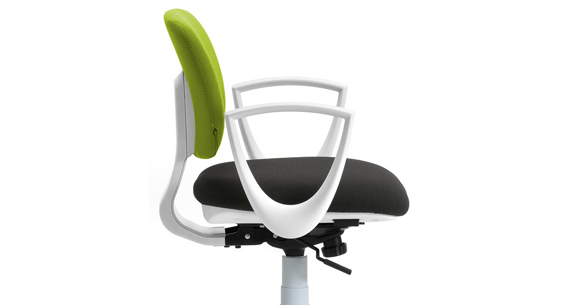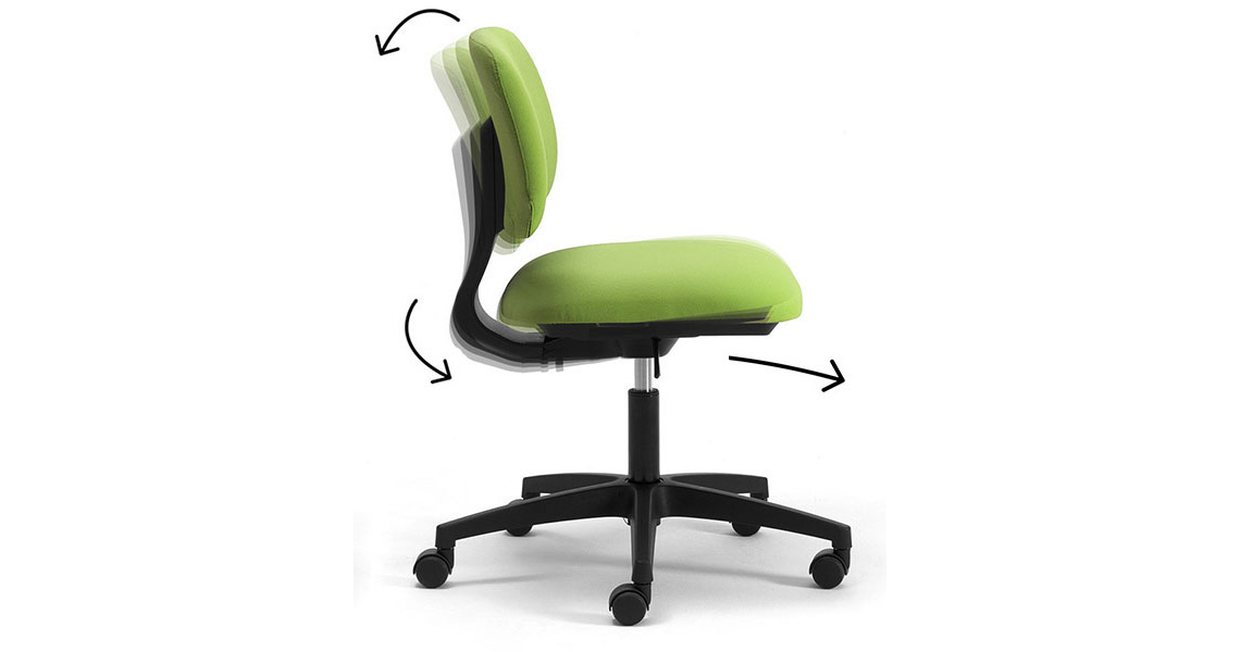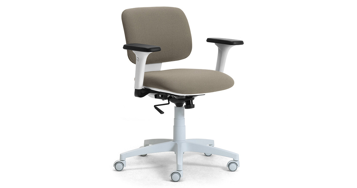 DAD es una silla giratoria fácil de ajustar con un diseño compacto; para quienes trabajan en línea en smart-working, aprendizaje a distancia desde casa o en presencia en la oficina, DAD garantiza un alto nivel de comodidad con un número mínimo de ajustes. Mecanismo sincronizado entre asiento y respaldo o oscilante 3D que libera la columna de situaciones de rigidez al sentarse, dando una sensación inmediata de bienestar y el apoyo adecuado en cada situación.