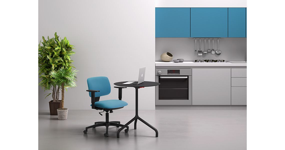 La silla giratoria DAD adopta un diseño compacto con bordes redondeados; esto le permite moverse fácilmente por la casa y la oficina, liberando la columna vertebral de situaciones de rigidez mientras está sentado.
