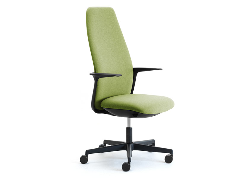 El diseño acogedor del sillón ergonómico Aura aporta personalidad al mueble, dibujando volúmenes con geometrías cálidas y envolventes, para que pueda colocarse en oficinas operativas y puestos de trabajo ejecutivos con un carácter único y personal.