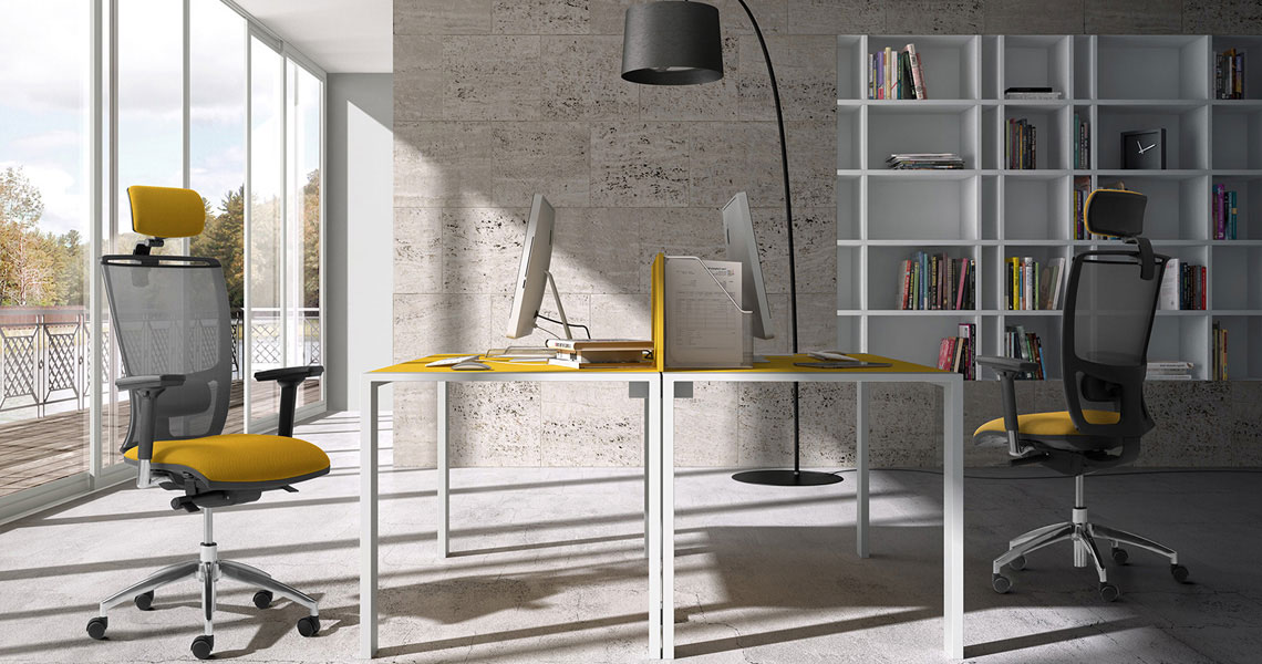 - Sillas ergonómicas para oficina de coworking semi-ejecutiva con ruedas, ideales para amueblar espacios operativos con una línea contemporánea