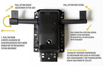 - Sillones para mobiliario de oficina y áreas de coworking con mecanismo de oscilación sincronizado que se puede bloquear en la posición más adecuada para mantener una postura cómoda