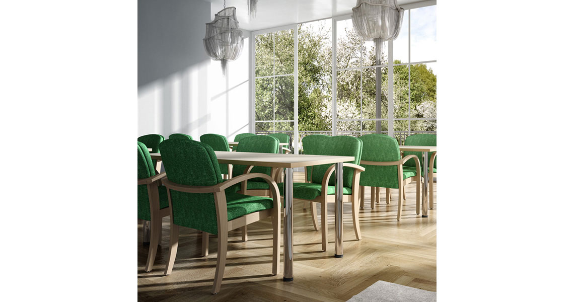 Kali es un sillón de madera maciza y resistente para residencias de ancianos y hospicios; la comodidad está garantizada por los cómodos cojines ignífugos que se pueden limpiar y desinfectar fácilmente. Kali está ignifuga en la clase 1IM y tiene un bajo impacto ambiental. El asiento de madera apilable Kali se puede personalizar en diferentes revestimientos como tejido antibacteriano ignífugo o cuero sintético fácilmente lavable e higienizable diseñado para el sector sanitario, lana, etc., así que Kali es perfecta para salas de espera o espacios recreativos en residencias de ancianos, hospitales y centros médicos.