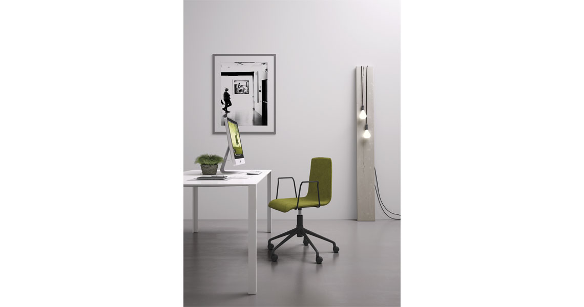 La silla de estudio y oficina en casa monocasco Zerosedici está equipada con cinco radios con ruedas y, como opción, con dos cómodos apoyabrazos. Zerosedici está especialmente diseñada para su uso en ambientes domésticos y estudios con un diseño contemporáneo aunque encaja perfectamente también en dormitorios y cerca de escritorios.