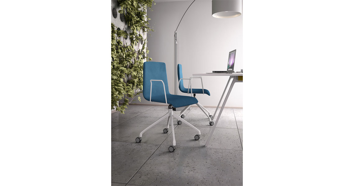- Silla giratoria monocasco equipada con patas de cinco radios con ruedas que garantiza siempre el máximo confort incluso después de largas sesiones de trabajo en el escritorio