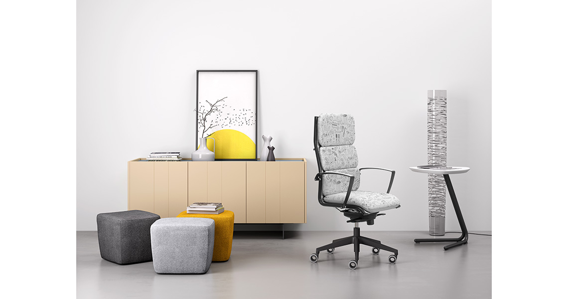- Sillones con generoso acolchado combinado con un atractivo diseño que se adapta bien a oficinas de líneas elegantes y contemporáneas