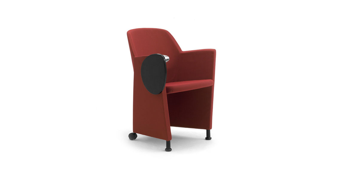 Sillones con ruedas y pala de escritura abatible para conferencias, congresos y salas polivalentes