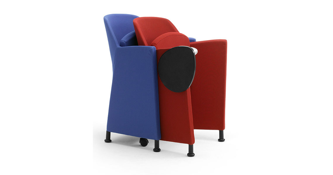 Viviana es una butaca equipada con ruedas con mesa plegable y asiento abatible, que permite apilarla de forma horizontal; es fácil de manejar con un volumen total limitado manteniendo una forma lineal y elegante; ideal para salas polivalentes y multifuncionales en oficinas, hoteles, etc.