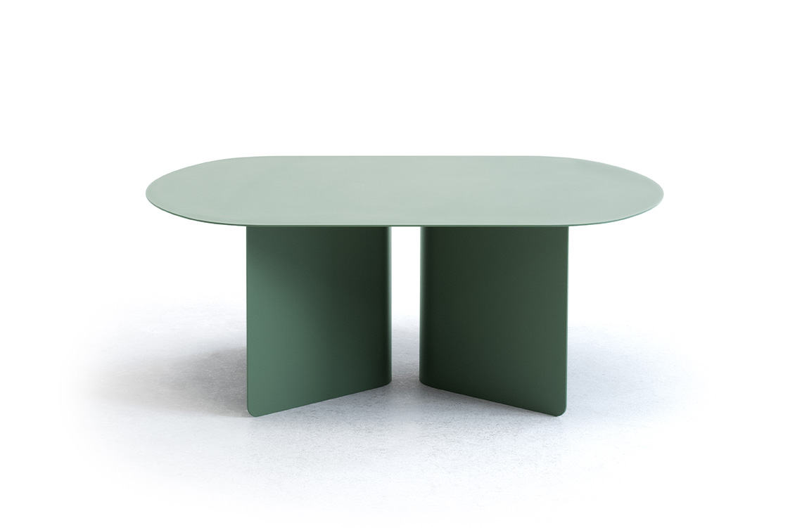 SLIM es una mesa de centro de metal coloreado, disponible en negro, blanco, verde y óxido. Versátil y de diseño, se adapta con gusto y estilo a cualquier tipo de decoración, añadiendo un toque moderno y refinado a los espacios interiores de los halls de hoteles, atrios, lobby y entradas de oficinas.