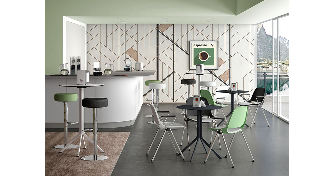 Las mesas altas de la familia Artika están diseñadas para amueblar de manera eficiente un lugar público, como un bar, un restaurante, un restaurante en la autopista, una pizzería y una enoteca. Disponibles como mesas altas y bajas, tienen una tapa fija o abatible que se reclina mediante un botón colocado debajo del tablero: esto hace que las mesas sean apilables verticalmente una vez que haya que liberar espacio para los clientes para limpieza u otras iniciativas.