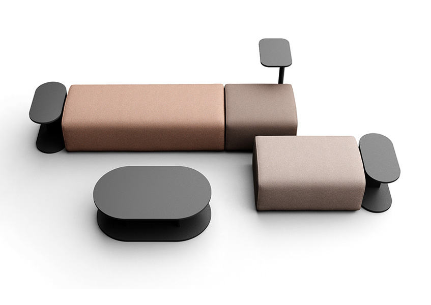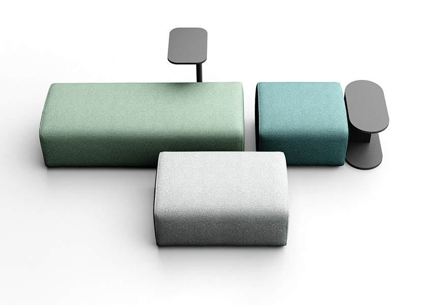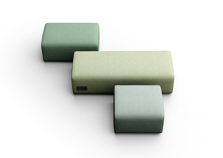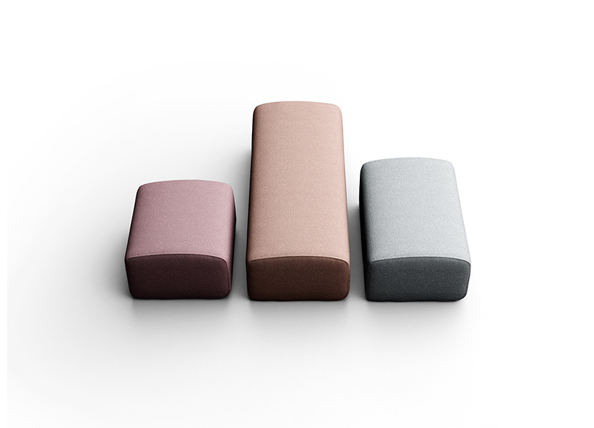 - Colección de pufs con un sencillo sistema de unión, pensados para armonizar diseño y eficacia.