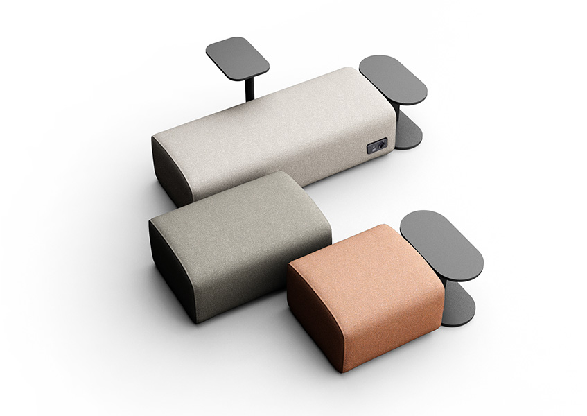 Los pufs Noà destacan por ser un mueble polivalente ya que pueden tapizarse en tela ignífuga, ecopiel, piel y lana disponibles en más de 300 colores. Todos los pufs Noà cuentan con mesas de almacenaje exentas, laterales o frontales en color antracita que, combinadas con los tonos de la tapicería, esculpen el espacio en busca del equilibrio perfecto entre estética y funcionalidad.