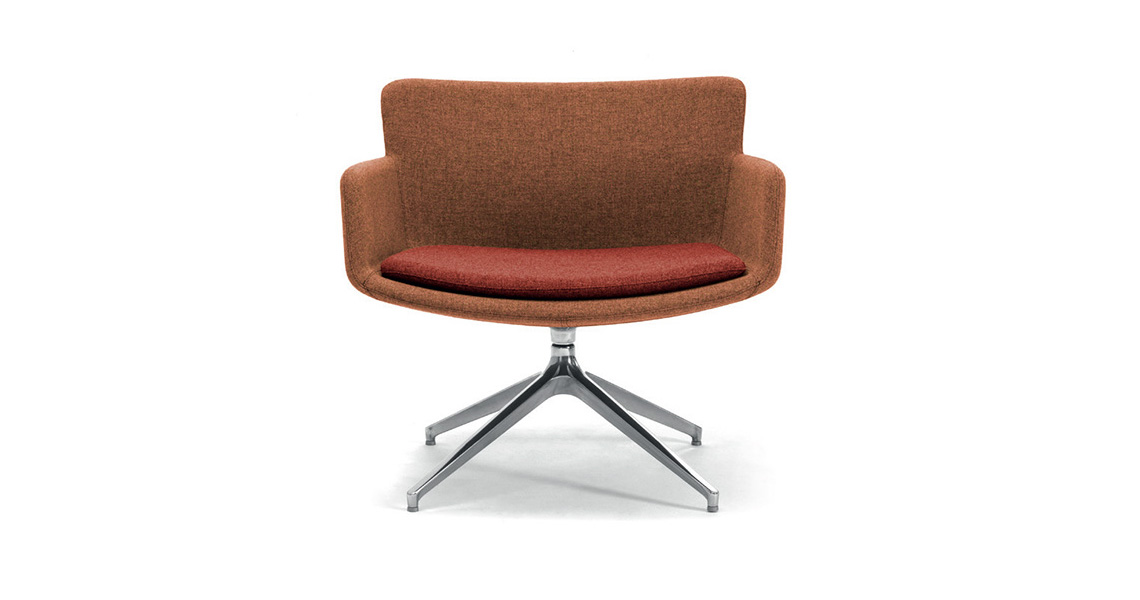 Lizzy está diseñado para amueblar la entrada, la sala de estar, el dormitorio, el espacio abierto para las áreas públicas y residenciales; la carcasa es de acero espumado en frío tapizada de lana, tejido ignífugo, cuero auténtico o ecocuero antibacteriano. La costura de doble aguja de los cojines Lizzy enfatiza la forma ancha y envolvente que asegura una posición cómoda para este asiento dinámico y refinado al mismo tiempo.
