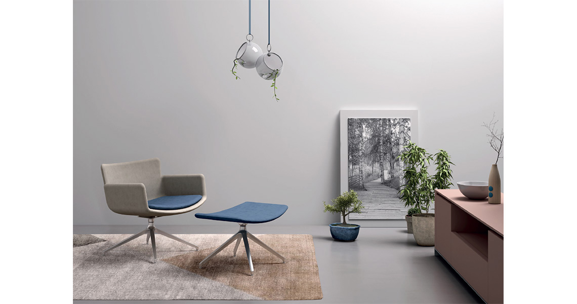 Estilo, elegancia y comodidad del asiento para un cómodo sillón con puf reposapies. El sillón Lizzy es algo personal al que no se puede renunciar. Apto para entrada, salón, sala de estar, rincón de lectura, salón o dormitorio, Lizzy da carácter a los muebles y, gracias a su puff, se convierte en un lugar de reflexión y descanso.