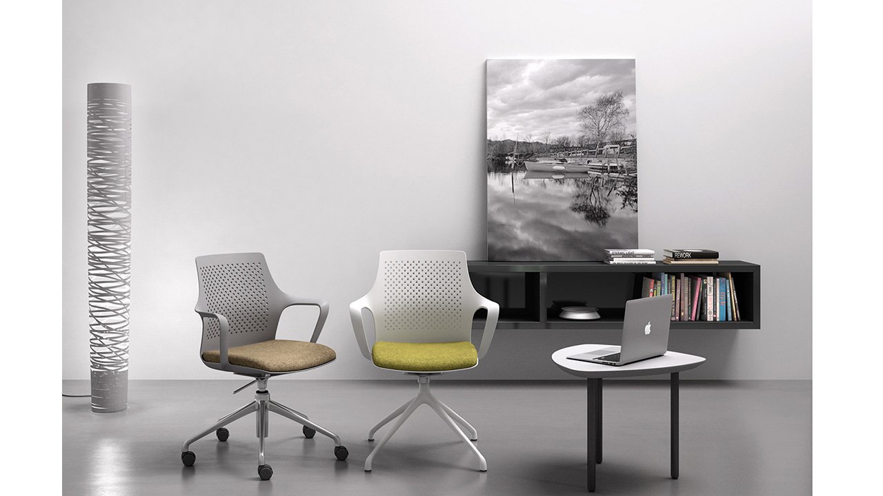 Sillas de oficina con monocasco de plástico con funcionalidad esencial y diseño compacto