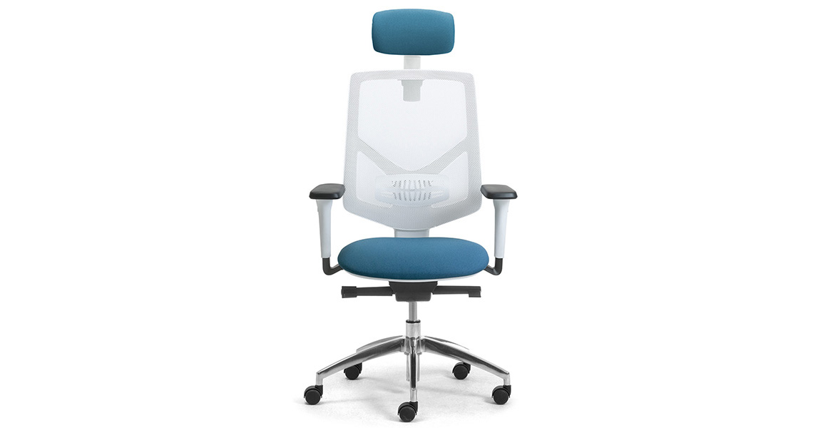 El diseño es uno de los elementos que hacen que una silla operativa blanca con respaldo de malla sea más moderna que otra. Si es cierto que entre los modelos más recientes hay sillas con formas extrañas, como las sillas de escritorio, por ejemplo con asiento para e-sports o gamer - también es cierto que la mayoría de las sillas de oficina blancas con respaldo de malla se caracterizan por un estilo esencial y un diseño minimalista. Active RE es una nueva silla operativa en malla blanca con líneas juveniles y dinámicas y estilo minimalista; las partes que componen el asiento están fabricadas íntegramente con materiales eco-sostenibles con las pruebas EN 1335 tipo "A".