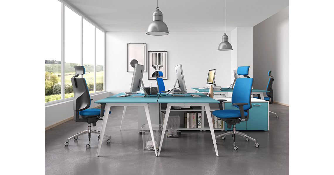 - Sillas de estilo dinámico que aportan frescura, comodidad y un diseño completamente renovado a las áreas de coworking y estaciones de trabajo