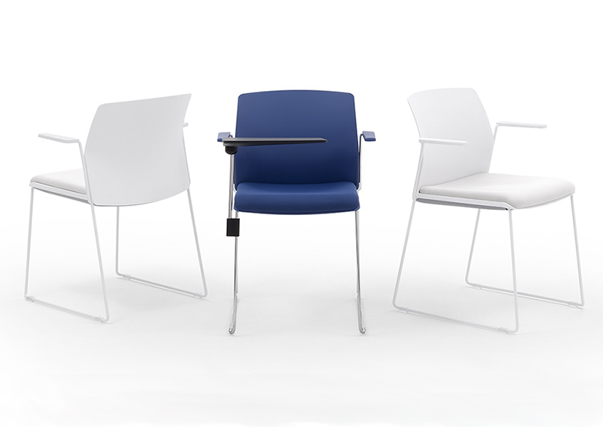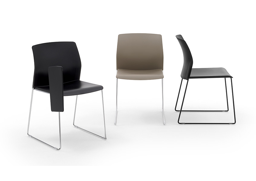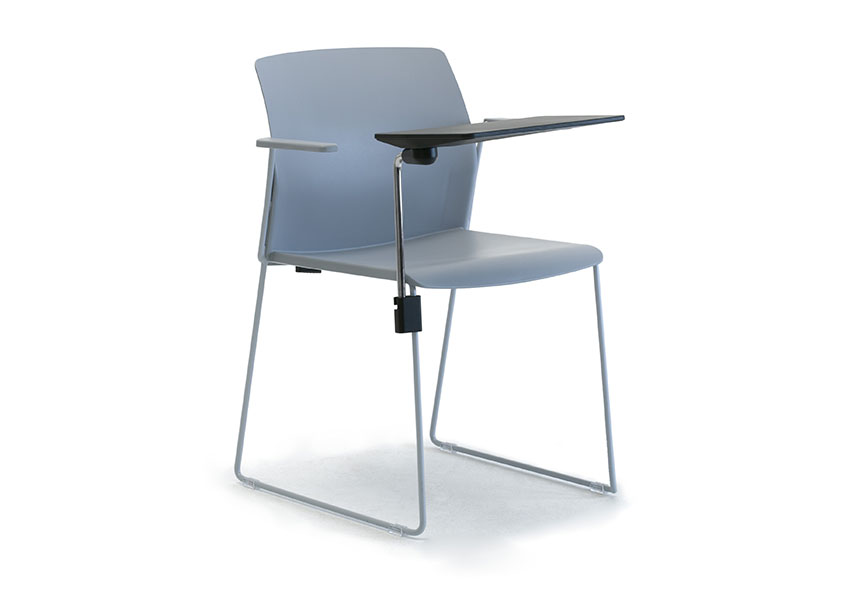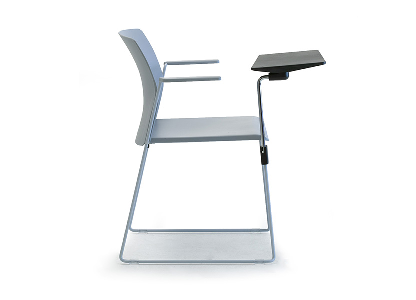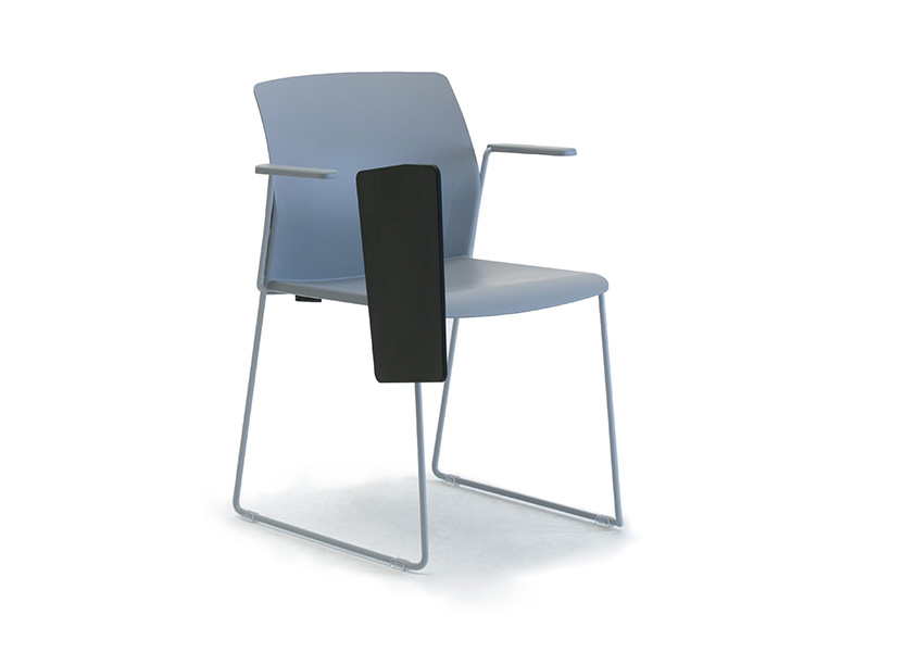 - Sillas que montan una tableta plegable y amovible donde tomar notas o apoyar un ordenador portátil o notebook y que, gracias al diseño especial del monocasco, garantizan ergonomía y máximo confort al sentarse