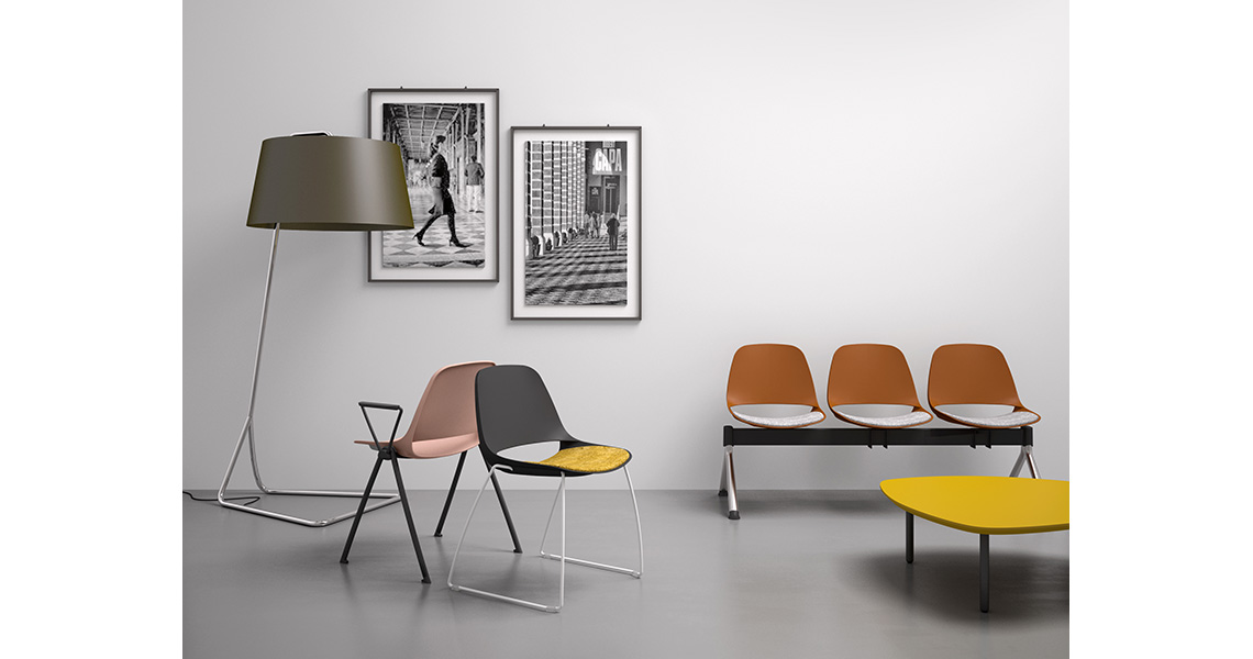 Las sillas de plástico monocasco con estructura de trineo de la familia Cosmo se caracterizan por tener colores modernos y delicados, y aptas para muebles con un diseño refinado; entre los disponibles de serie encontramos óxido, salvia, gris, lino, antracita y blanco.