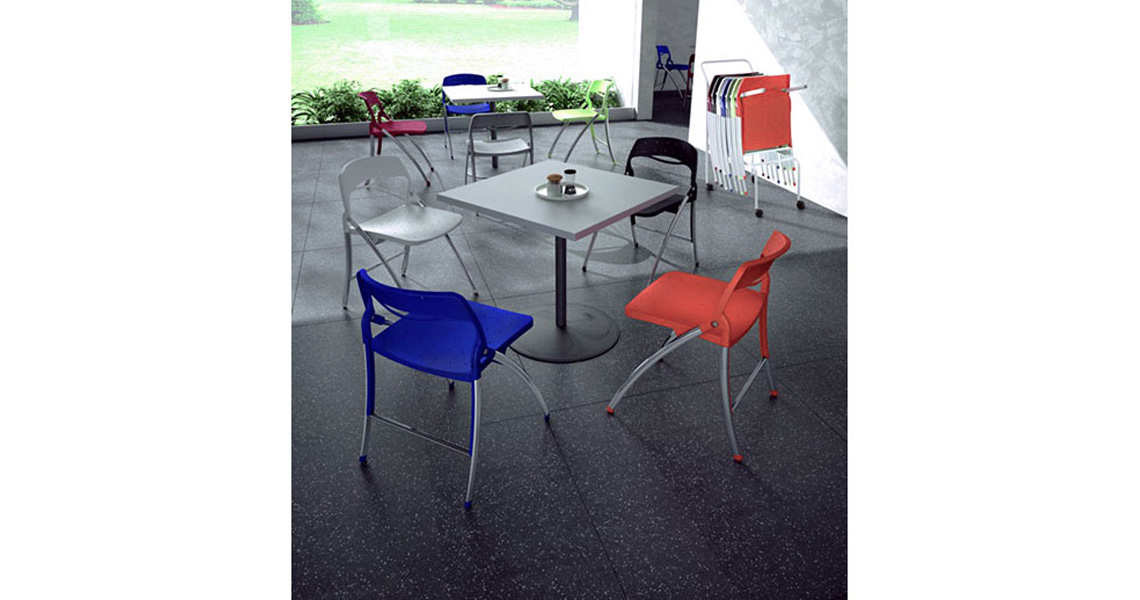 - Silla plegable que es un mueble indispensable dentro de cualquier espacio colectivo o zona polivalente