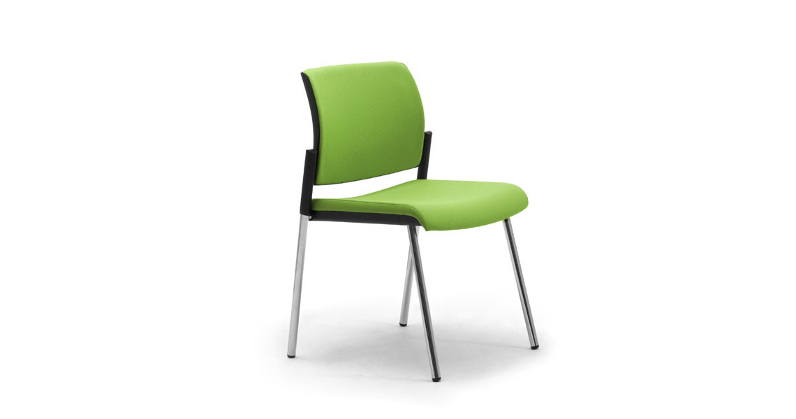 La estructura está hecha de un robusto tubo de acero cromado con un diámetro de 25 mm y un espesor de 1,5 mm. El acolchado del asiento y el respaldo es de poliuretano espumado en frío. La versión con respaldo de malla adopta una estructura de soporte en polipropileno a prueba de golpes con bordes redondeados fabricada con material reciclado y reciclable. El asiento se completa con apoyabrazos en nailon negro con inserciones de acero. Lee más...