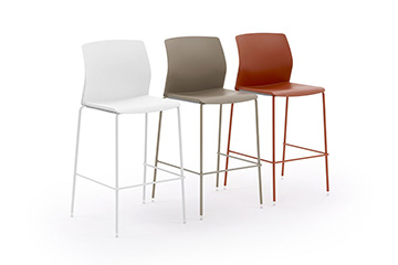 - Un taburete de perfil minimalista y esbelto, diseñado para colocarse delante de un mostrador de desayunos de cocina o junto a mesas altas en restaurantes, bares, heladerías y snak-bars.