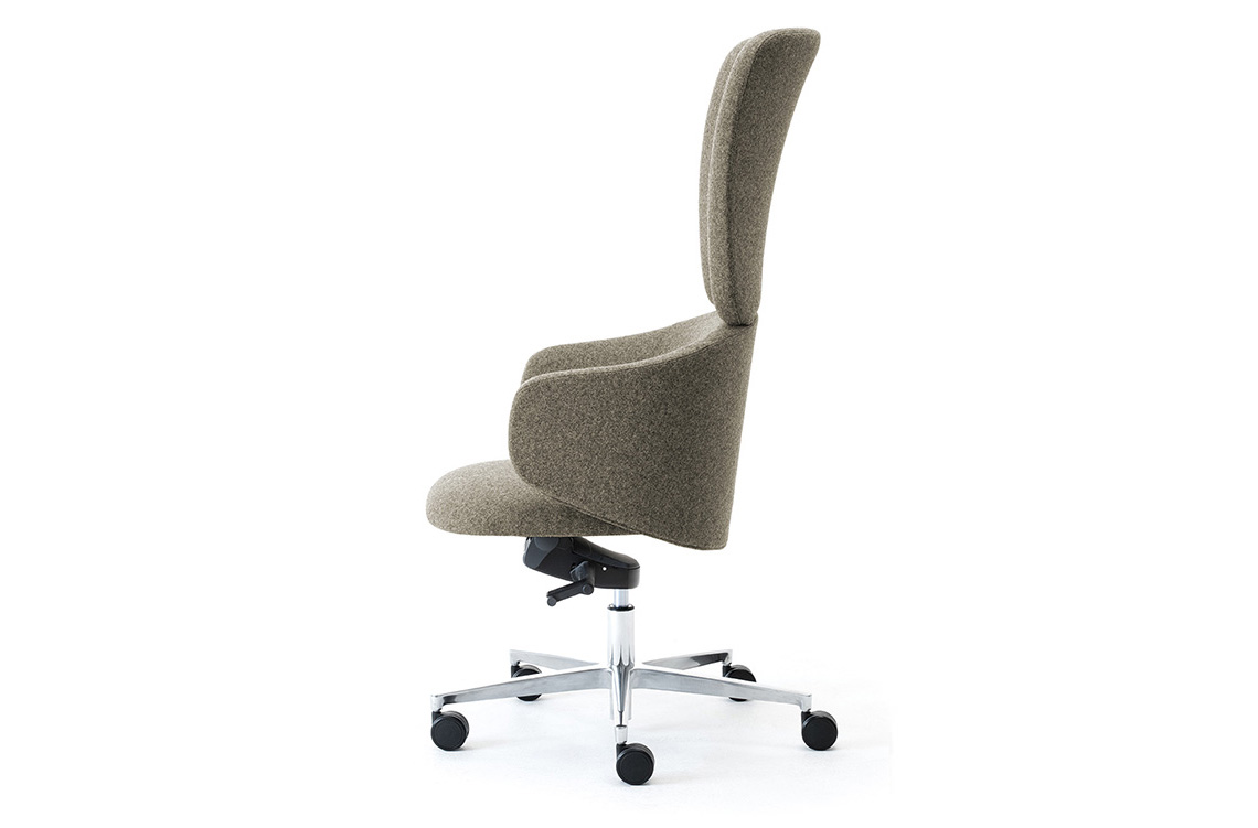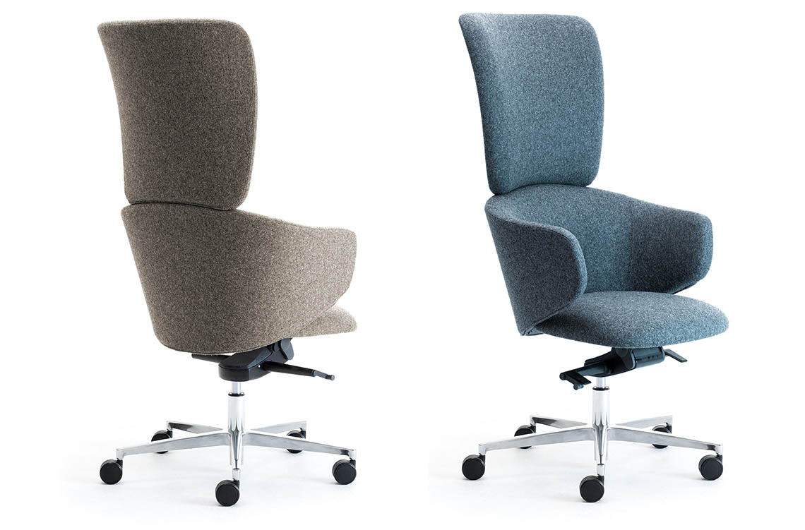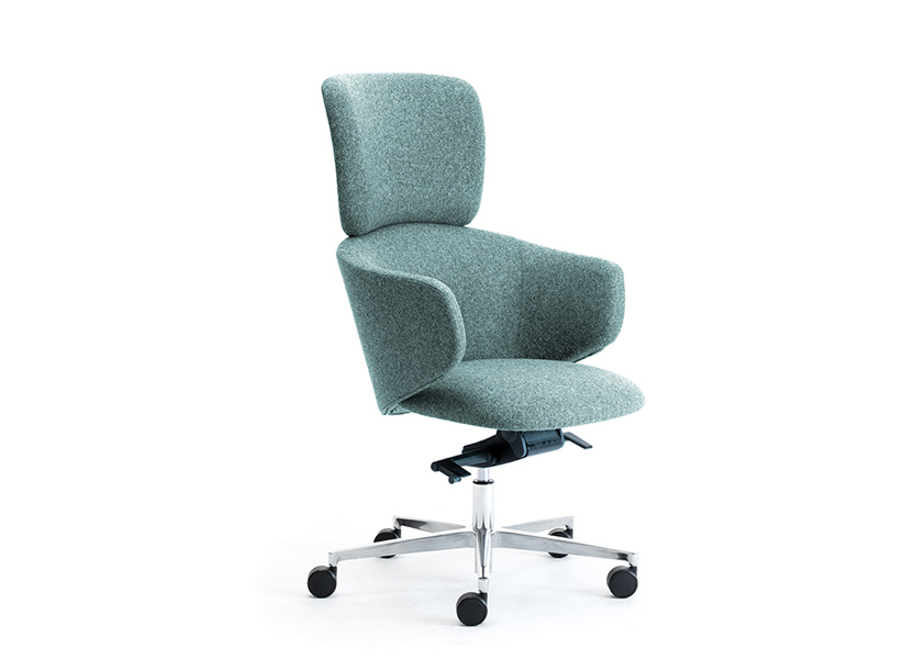 Las líneas envolventes del sillón presidencial Alisè aportan personalidad al mobiliario, dibujando volúmenes sólidos pero cálidos en los despachos de dirección con un fuerte impacto visual.