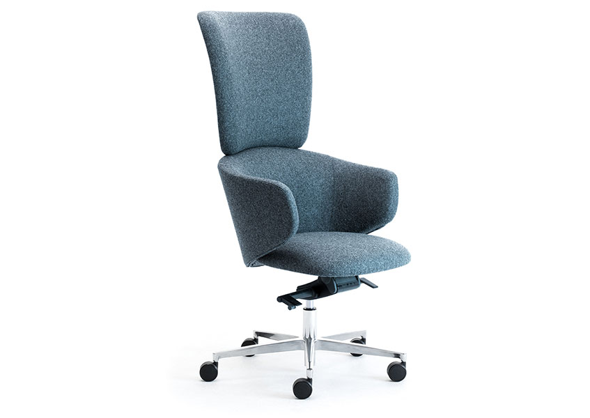 La familia de sillones de dirección Alisè nace de la idea de los Alisios, los típicos vientos ecuatoriales que, gracias a su constancia y direccionalidad, modelan la tierra y las cosas a su paso. Por este motivo, los sillones de dirección Alisè diseñan oficinas ejecutivas con geometrías envolventes y un fuerte impacto visual que transmiten autoridad y profesionalidad a los huéspedes y visitantes.