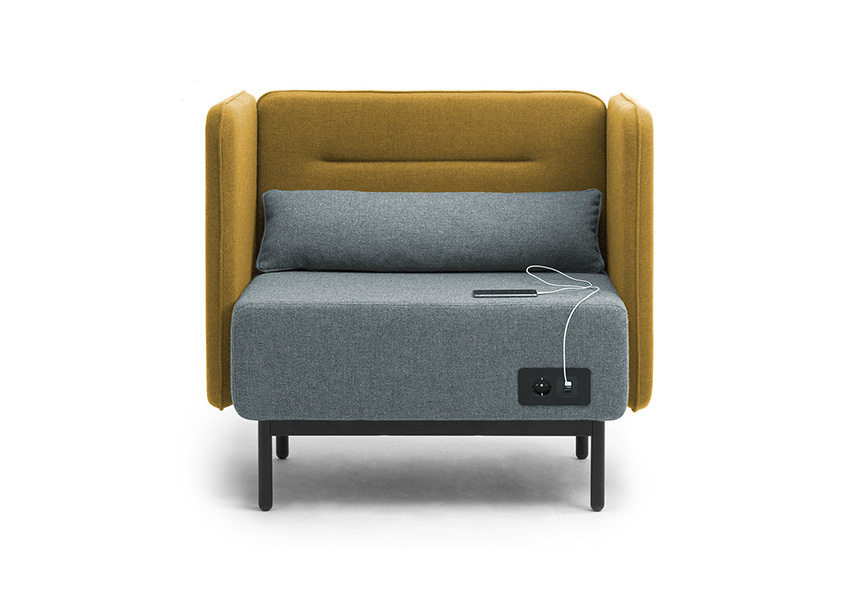 - Sillones y sofás modulares de estilo contemporáneo para vestíbulos, entradas y zonas de espera equipados con toma de recarga USB tipo "C" + SCHUKO para teléfonos móviles, tabletas y ordenadores portátiles