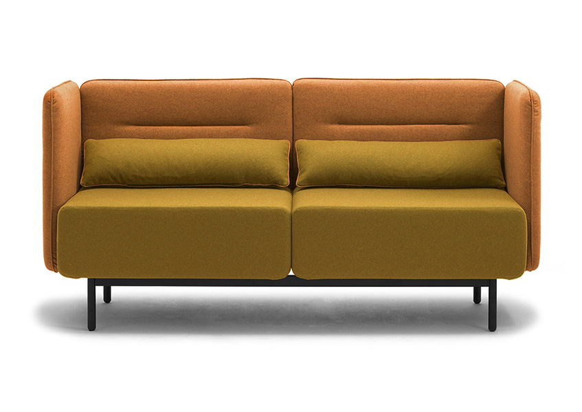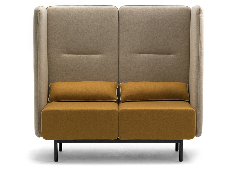 - Familia de sofás de 1, 2 y 3 plazas con respaldo alto y bajo y sillones con asiento ancho y estrecho que crean formas geométricas y volúmenes acordes con las soluciones de mobiliario más modernas para espacios públicos y residenciales.