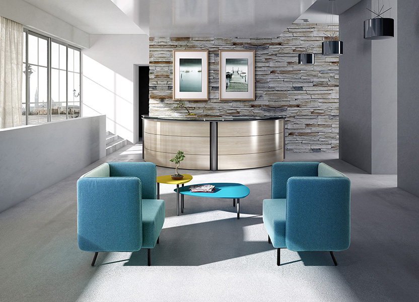 - Sofás y sillones de diseño moderno y compacto, concebidos para zonas de recepción, salas de espera y entradas con gran tránsito de personas.