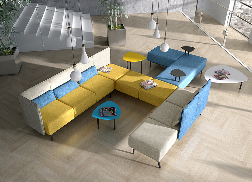 - Sofás y sillones a los que se pueden añadir y quitar fácilmente respaldos, laterales y asientos para satisfacer las necesidades de recepción y espera en distintos contextos, como vestíbulos, entradas y vestíbulos de oficinas, bancos, clínicas médicas y hospitales.