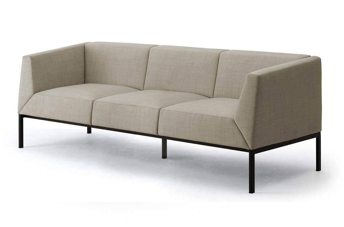 Kos es un sofá diseñado para halls, pasillos, entradas y salas de espera ejecutivas, con líneas elegantes combinadas con un armazón metálico de estilo minimalista que casi desaparece bajo el acolchado de los cómodos cojines, lo que le confiere un diseño casi etéreo, suspendido en el espacio y en el tiempo.