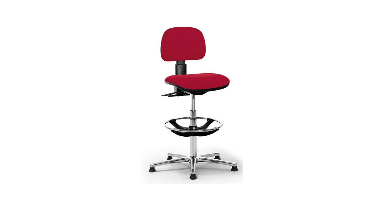 Sillas y taburetes de poliuretano integral equipados con reposapiés para trabajar de pie
